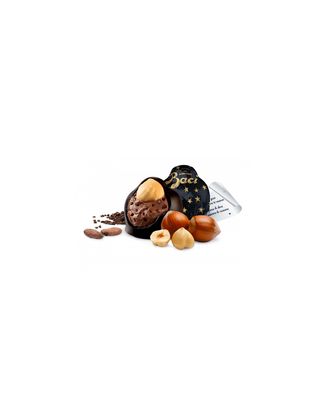 Pasta di cacao, zucchero, NOCCIOLE 18%, granella di semi di cacao caramellata 7% (semi di cacao, zucchero, BURRO anidro), burro di cacao, BURRO anidro, LATTE in polvere, emulsionante (lecitine di girasole), aroma naturale di vaniglia. Cacao: 70% minimo nel cioccolato fondente.