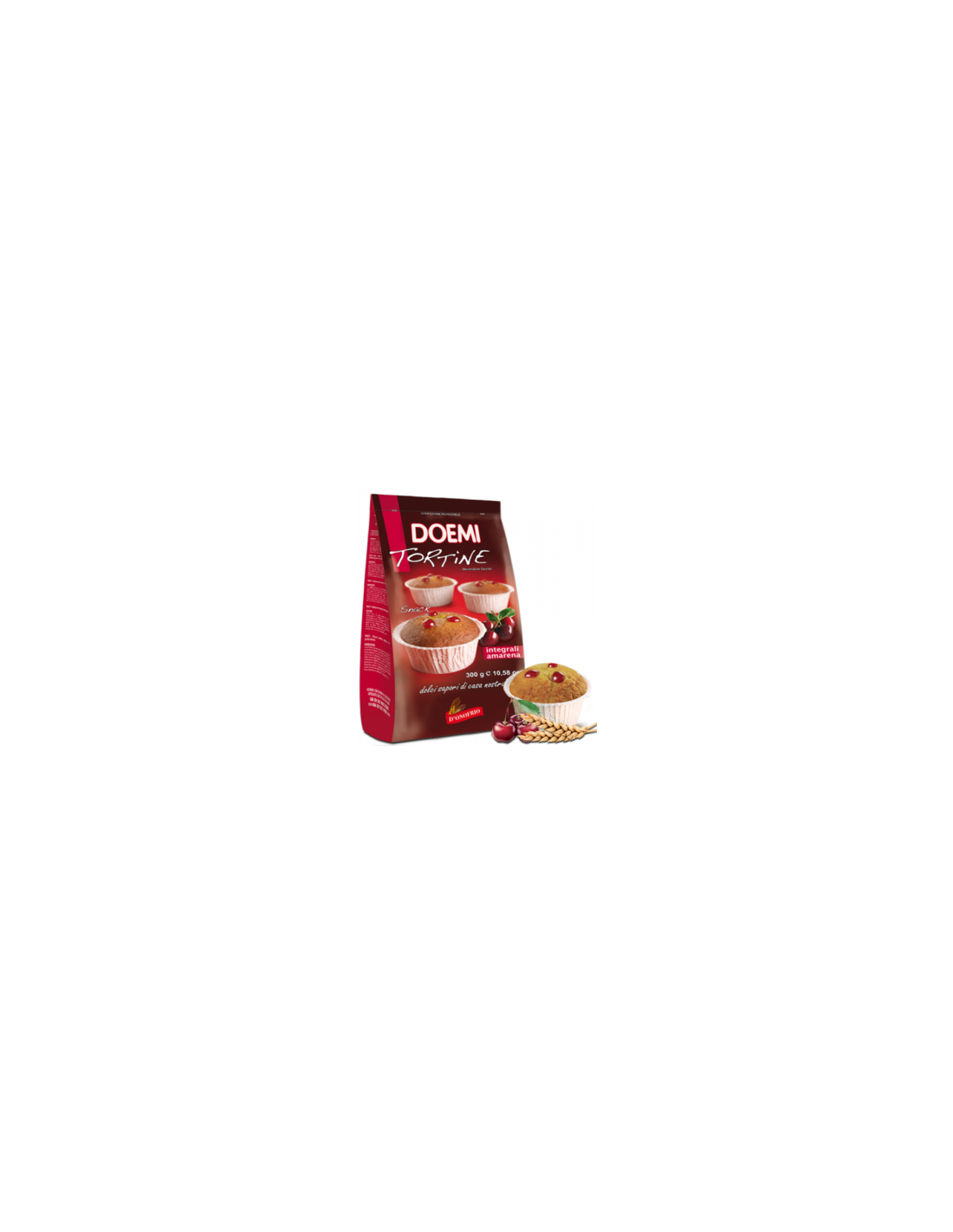 Ingredienti:Farina integrale di GRANO tenero (30%), zucchero, margarina vegetale (grassi non idrogenati di palma), passata di amarena 15% [sciroppo di glucosio, zucchero, succo di amarena (15%), purea di amarena (12%), colorante (antociani), stabilizzante (pectina), amido, correttori di acidità (E330, E331, E333), conservante (E202), aromi], UOVA, emulsionanti (mono e di gliceridi degli acidi grassi), stabilizzante (sciroppo d sorbitolo), sale, agenti lievitanti (difosfato disodico, carbonato acido di sodio, bicarbonato di ammonio), correttore di acidità (acido citrico). Gli ingredienti evidenziati possono provocare allergie o intolleranze. Può contenere tracce di: ARACHIDI, FRUTTA A GUSCIO. Conservare in luogo fresco e asciutto.