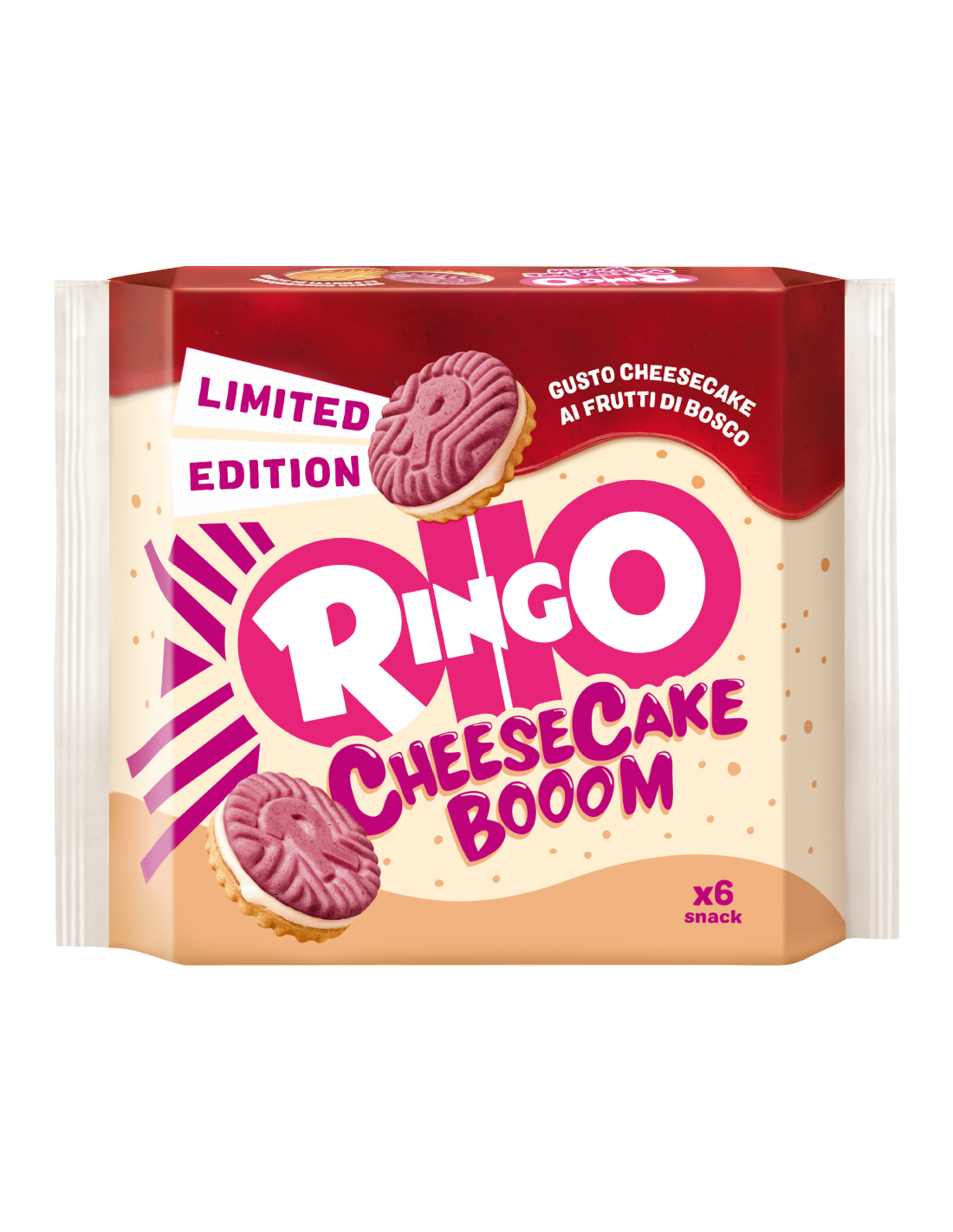 ingredienti: Biscotti 73%*: farina di grano tenero, zucchero, olio di girasole, amido di frumento, estratto di malto d'orzo 1%*, concentrato di barbabietola e carota, amido di mais, purea disidratata di frutti di bosco in proporzione variabile (fragola, mora, lampone, mirtillo, ribes nero) 0,4%*, sale, agenti lievitanti (difosfato disodico, carbonato acido di sodio), cacao, aroma. Crema 27%*: grasso e olio vegetali non idrogenati (cacao, girasole), zucchero, destrosio, siero di latte in polvere, amido di frumento, formaggio (latte) in polvere 0,8%*, maltodestrina, latticello (latte) in polvere, aromi. *% espresse sul prodotto finito. Può contenere tracce di uovo, senape, frutta a guscio e soia.