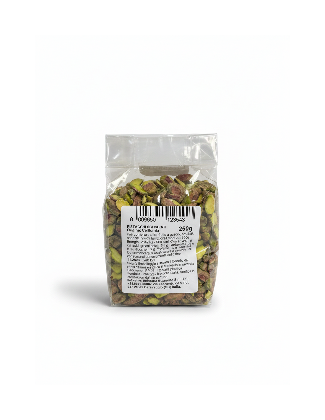 Valori nutrizionali per 100g: Energia 2834Kj/637Kcal, Grassi 45g di cui acidi grassi saturi 8g Carboidrati 10g di cui zuccheri 4,1g, Proteine 21g, Sale 0g.