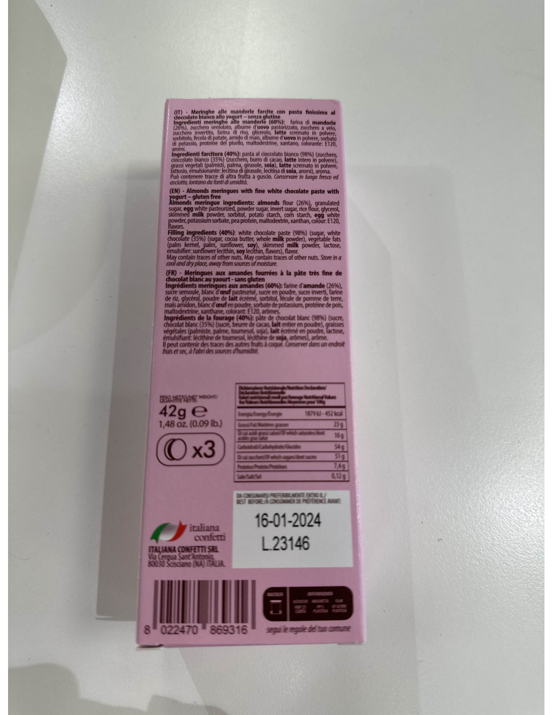 L’impasto del torrone è arricchito da un bilanciato mix di mandorle e nocciole tostate a frutto intero. L’impasto è realizzato secondo ricetta originaria del 1925: cotto nella torroniera, versato a caldo e impastato con lavorazione manuale; viene poi spatolato a mano per conservarne la sofficità. In decoro, pistacchio al naturale a frutto intero e...