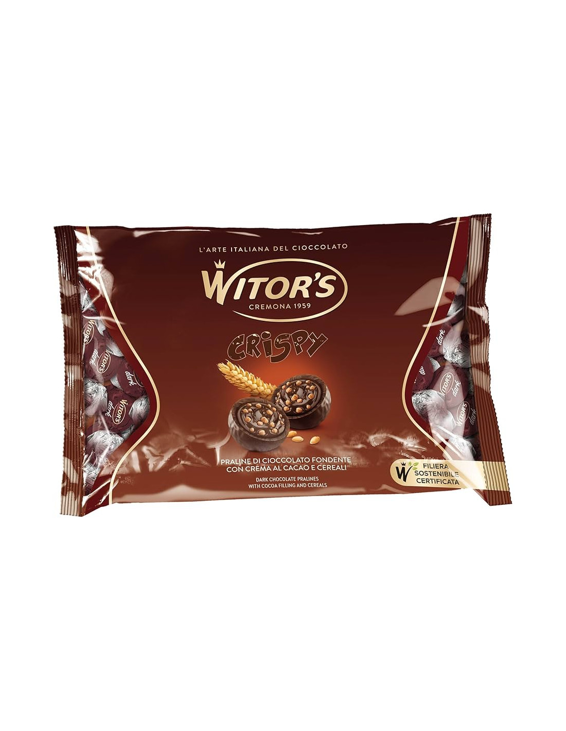 50Praline con cioccolato bianco e fragole con morbido ripieno alla panna.