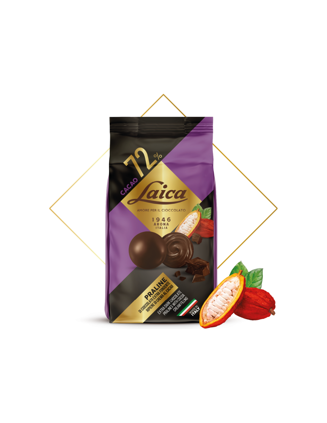 50Praline con cioccolato bianco e fragole con morbido ripieno alla panna.